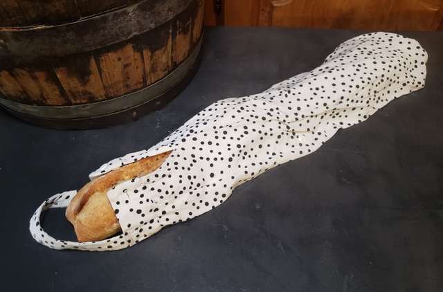 Le sac à baguette (env. 50 cm) protège votre pain tout en remplaçant les emballages jetables 🥖. Sa forme longue et légère le rend parfait pour les courses quotidiennes.